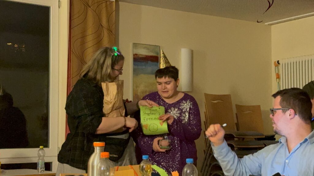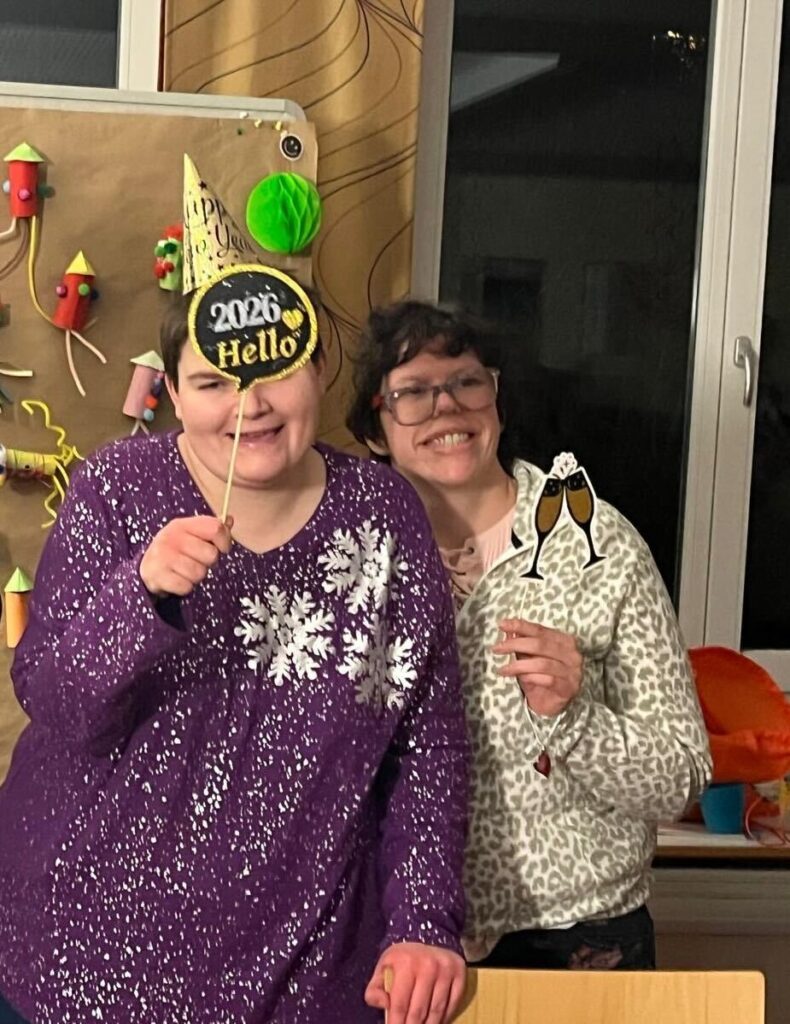 Die Gruppe verwandelte ihren Raum in eine Silvester-Location, es wurde getanzt, gespielt, gesungen. Und zum Abendessen gab es ein festliches Buffet, bei dem wirklich jede*r satt und glücklich wurde.