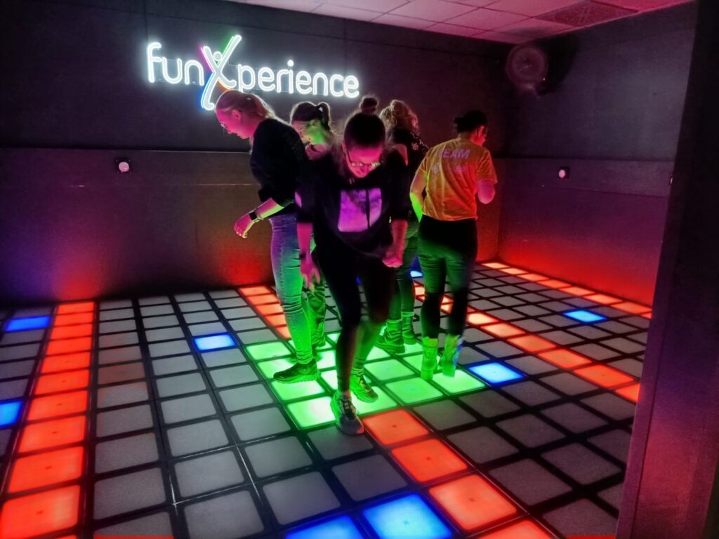 Besonders begeistert hat uns jedoch eine moderne Version von „Der Boden ist Lava“. Auf einem interaktiven Spielfeld mit bunt leuchtenden Fliesen mussten wir Labyrinthe bewältigen, Hindernissen ausweichen und Muster nachstellen. Hier waren nicht nur Geschicklichkeit und schnelle Reaktionen gefragt, sondern auch jede Menge Teamwork.